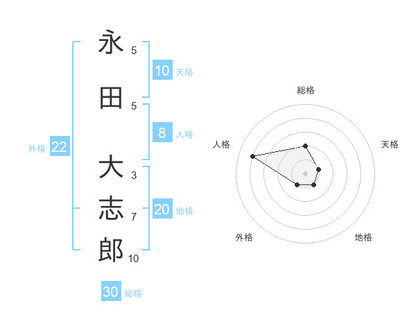 永田 大志郎さんを姓名の画数から五運を鑑定