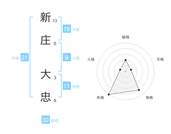 新庄 大忠さんの総格は30画の2点!