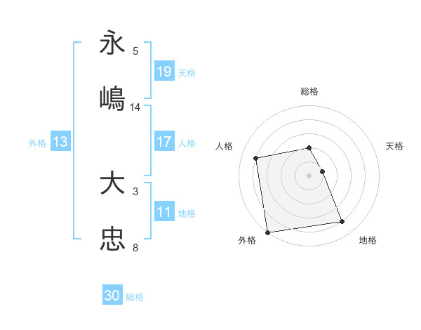 永嶋 大忠さんの外格は13画の5点!