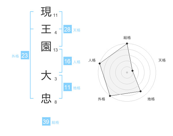 現王園 大忠さんの外格は23画の5点!