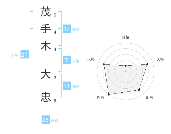 茂手木 大忠さんを姓名の画数から五運を鑑定