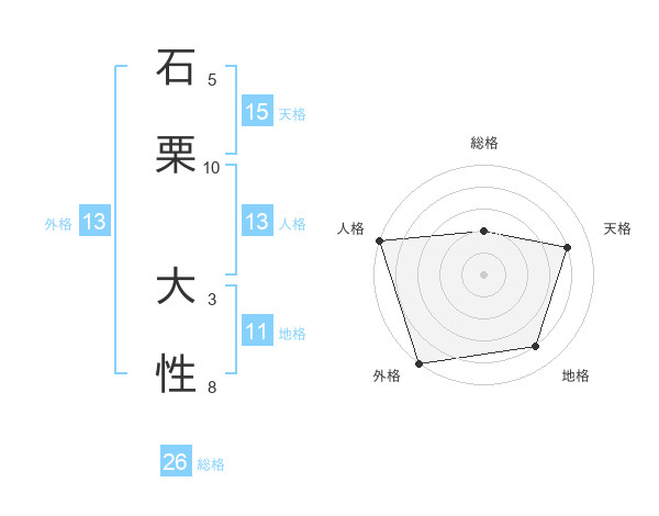 石栗 大性さんの外格は13画の5点!