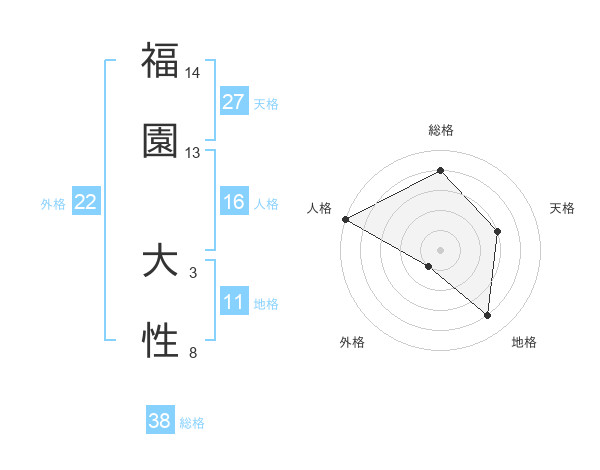 福園 大性さんの総格は38画の4点!