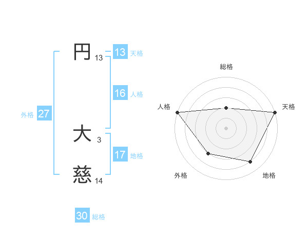 円 大慈さんの総格は30画の2点!