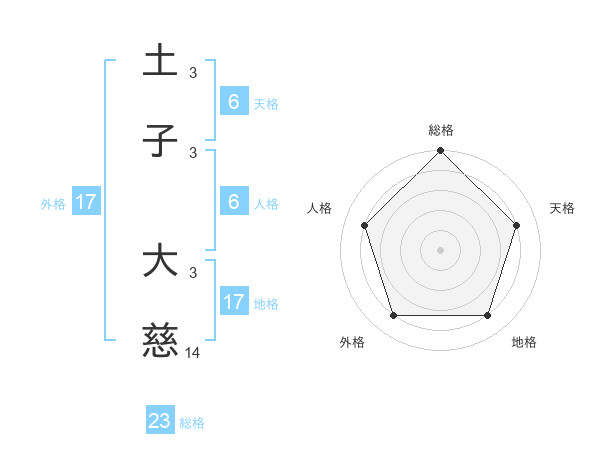 土子 大慈さんの総格は23画の5点!