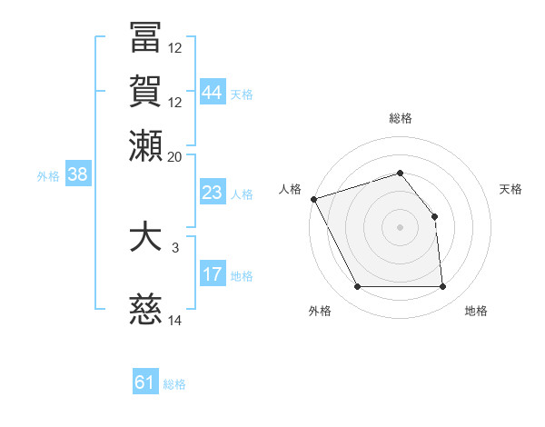 冨賀瀬 大慈さんを姓名の画数から五運を鑑定
