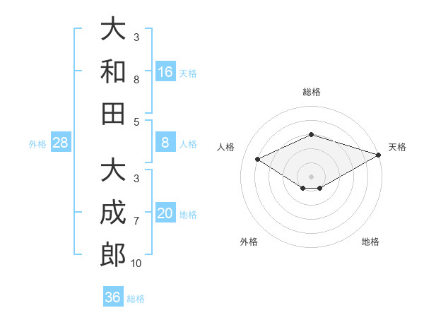 大和田 大成郎さんを姓名の画数から五運を鑑定