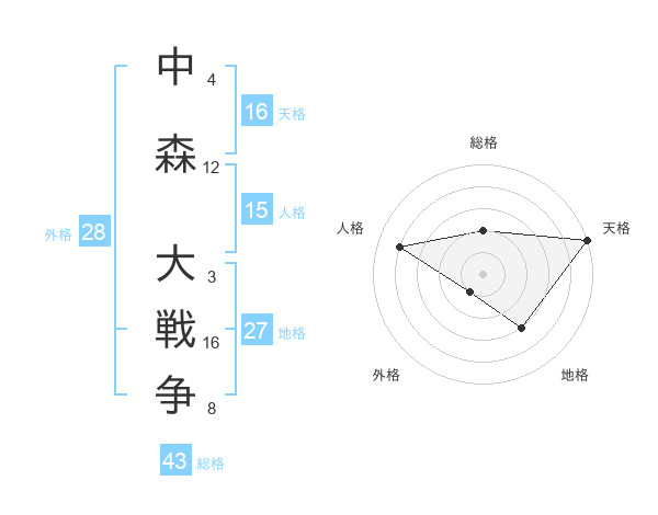 中森 大戦争さんを姓名の画数から五運を鑑定