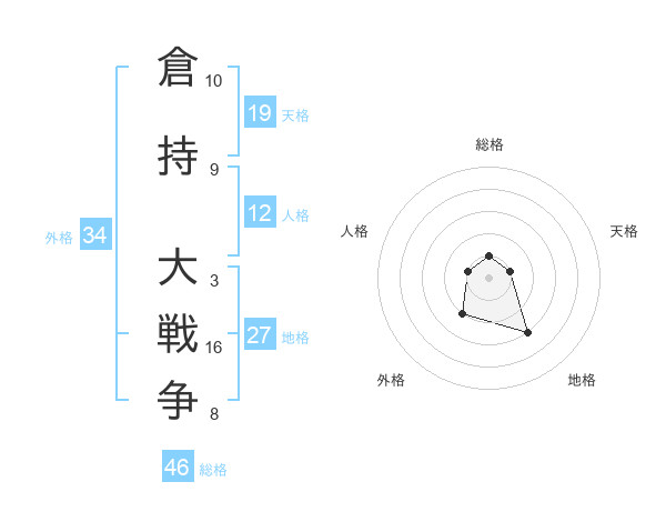 倉持 大戦争さんを姓名の画数から五運を鑑定