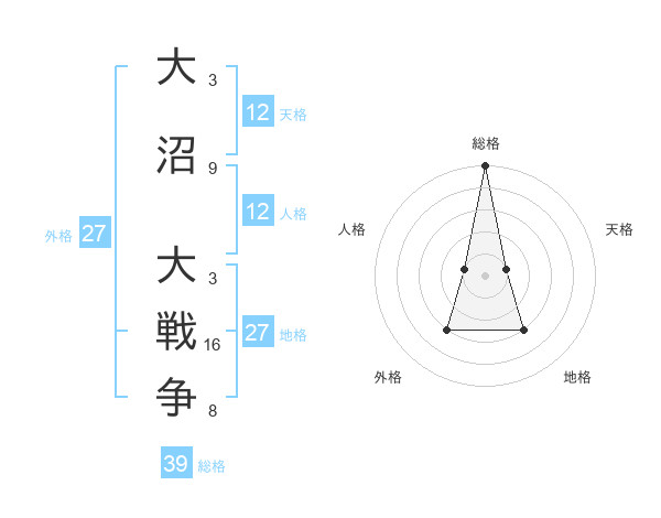 大沼 大戦争さんの総格は39画の5点