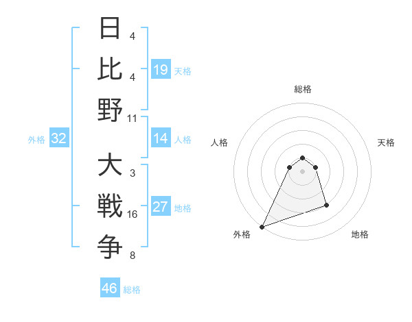 日比野 大戦争さんを姓名の画数から五運を鑑定