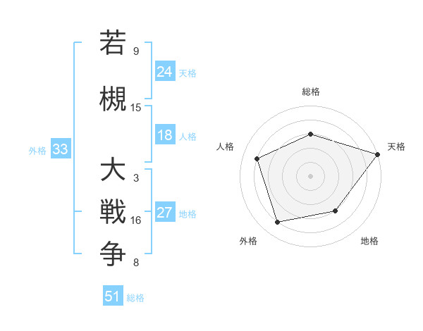 若槻 大戦争さんを姓名の画数から五運を鑑定