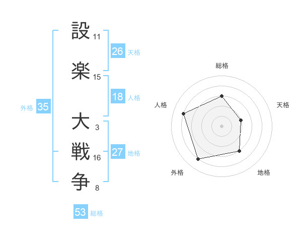 設楽 大戦争さんの総格は53画の3点!