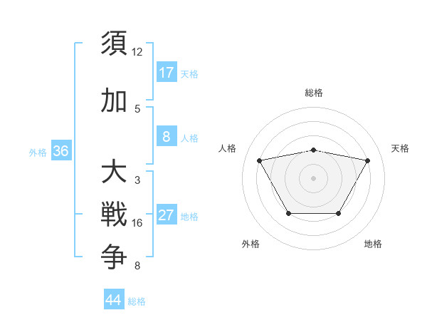 須加 大戦争さんを姓名の画数から五運を鑑定