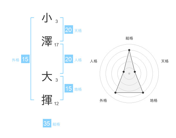 小澤 大揮さんの総格は35画の4点!