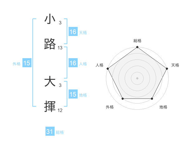 小路 大揮さんの総格は31画の5点!