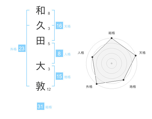 和久田 大敦さんの総格は31画の5点!