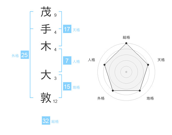 茂手木 大敦さんを姓名の画数から五運を鑑定