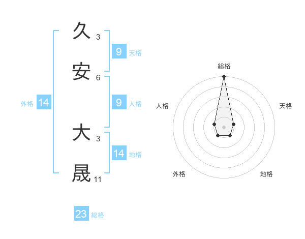 久安 大晟さんの総格は23画の5点!