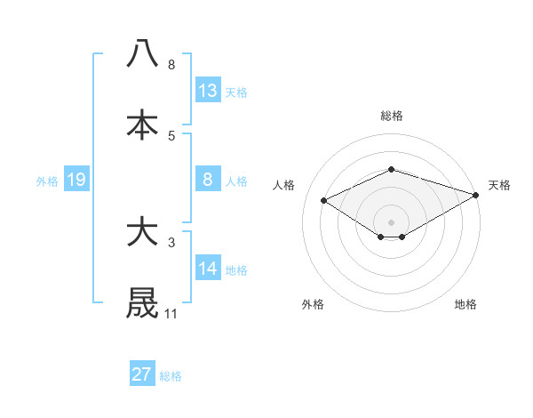 八本 大晟さんの外格は19画の1点!