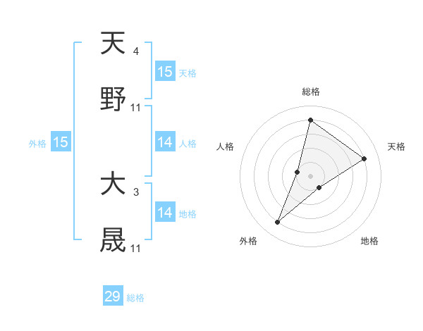 天野 大晟さんの総格は29画の4点!