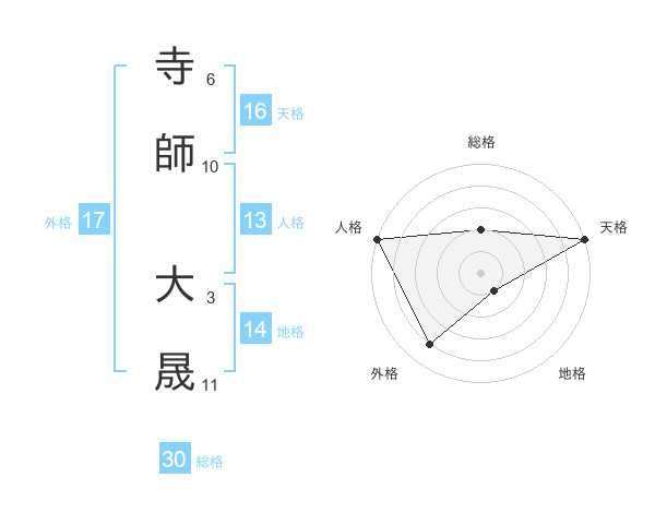 寺師 大晟さんの総格は30画の2点!