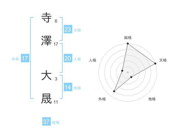 寺澤 大晟さんを姓名の画数から五運を鑑定