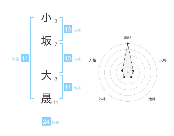 小坂 大晟さんの総格は24画の5点!