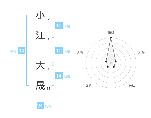 小江 大晟さんの総格は24画の5点!