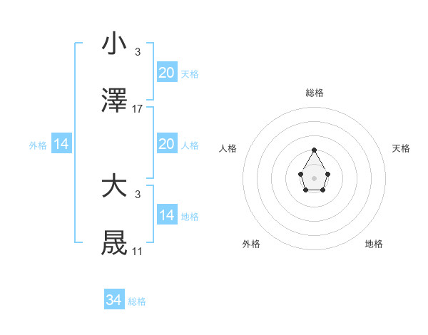 小澤 大晟さんを姓名の画数から五運を鑑定