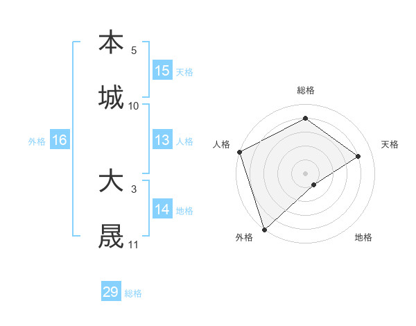 本城 大晟さんを姓名の画数から五運を鑑定