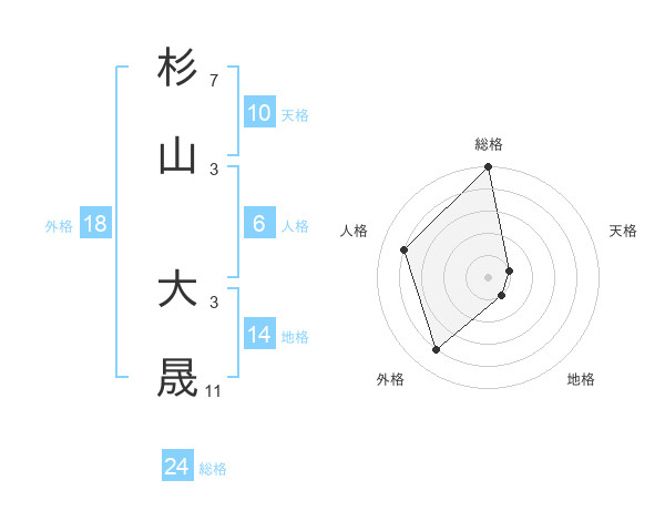 杉山 大晟さんの総格は24画の5点!