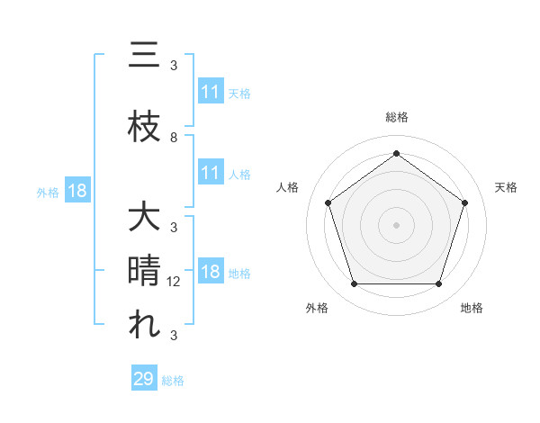 三枝 大晴れさんを姓名の画数から五運を鑑定