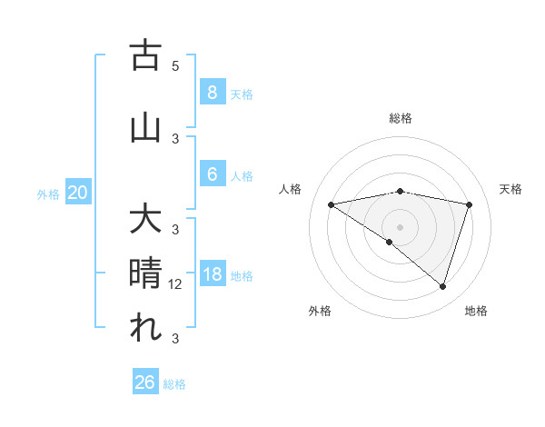 古山 大晴れさんの総格は26画の2点!