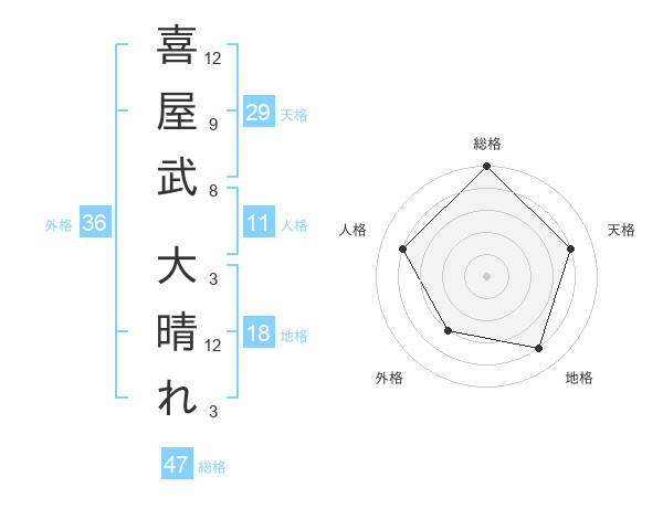 喜屋武 大晴れさんを姓名の画数から五運を鑑定