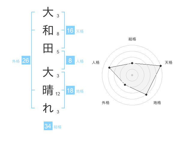 大和田 大晴れさんを姓名の画数から五運を鑑定