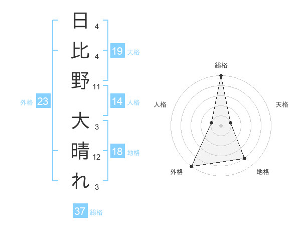 日比野 大晴れさんを姓名の画数から五運を鑑定