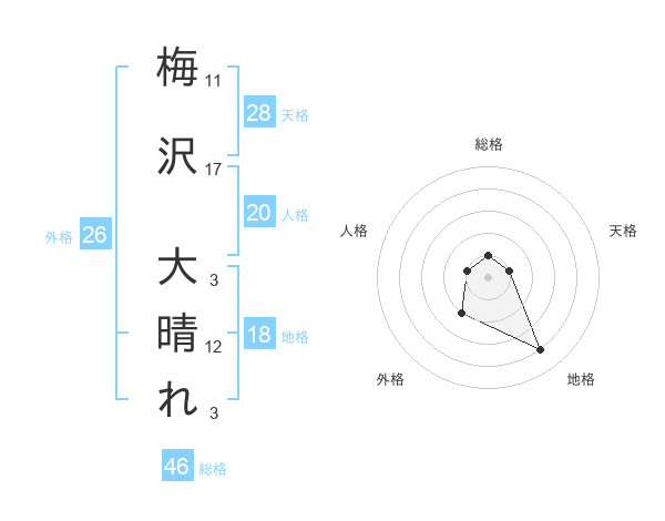 梅沢 大晴れさんを姓名の画数から五運を鑑定