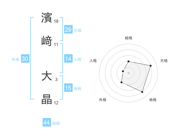 濱﨑 大晶さんの総格は44画の2点
