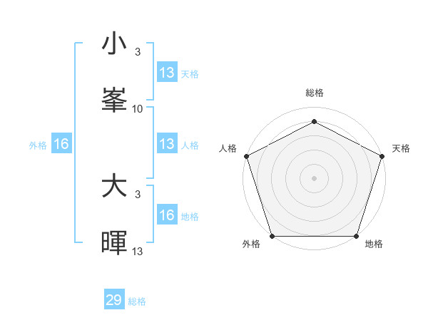 小峯 大暉さんを姓名の画数から五運を鑑定
