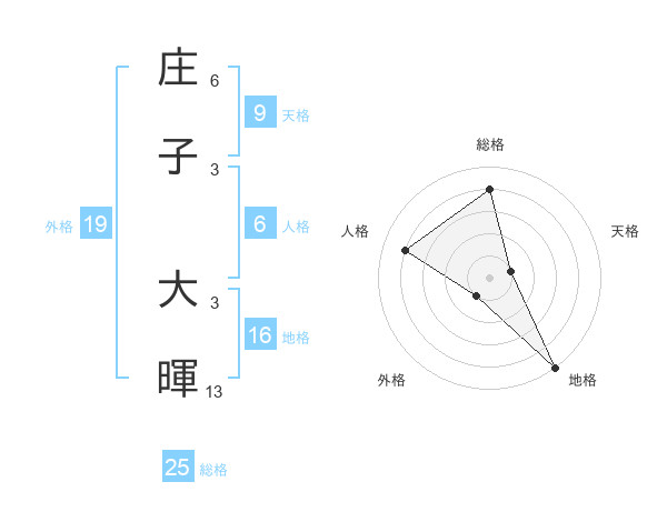 庄子 大暉さんを姓名の画数から五運を鑑定