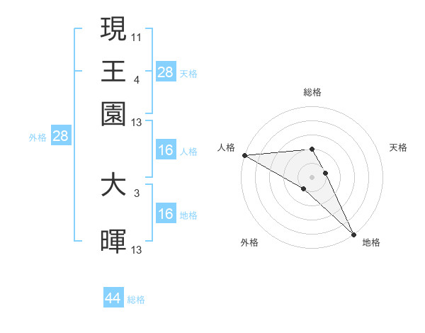 現王園 大暉さんを姓名の画数から五運を鑑定