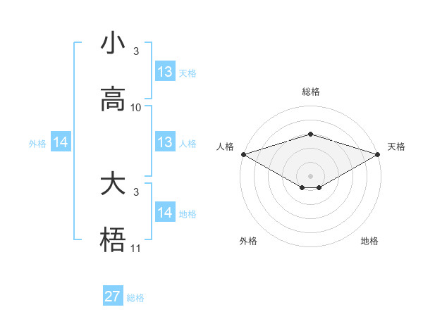 小高 大梧さんの総格は27画の3点!