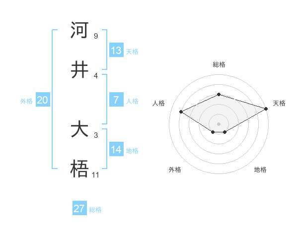 河井 大梧さんの総格は27画の3点!