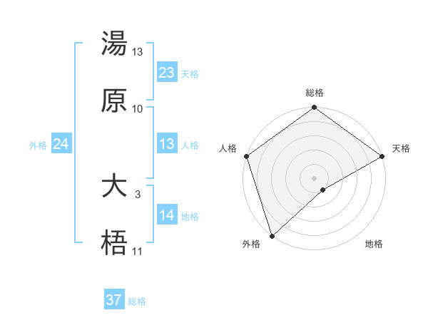 湯原 大梧さんを姓名の画数から五運を鑑定