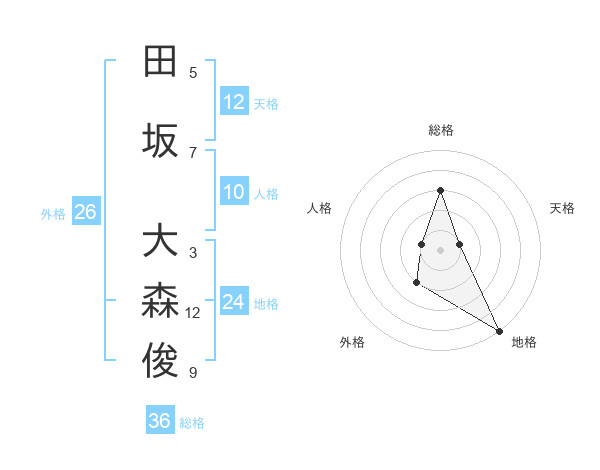 田坂 大森俊さんを姓名の画数から五運を鑑定