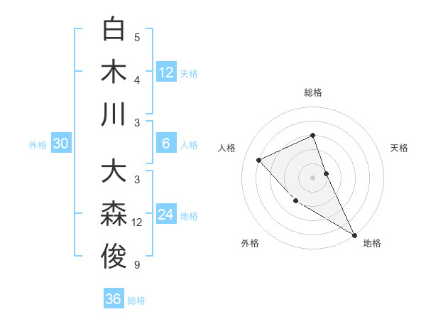 白木川 大森俊さんを姓名の画数から五運を鑑定