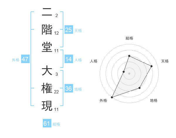 二階堂 大権現さんの外格は47画の5点!