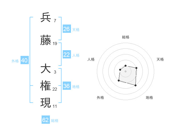 兵藤 大権現さんを姓名の画数から五運を鑑定