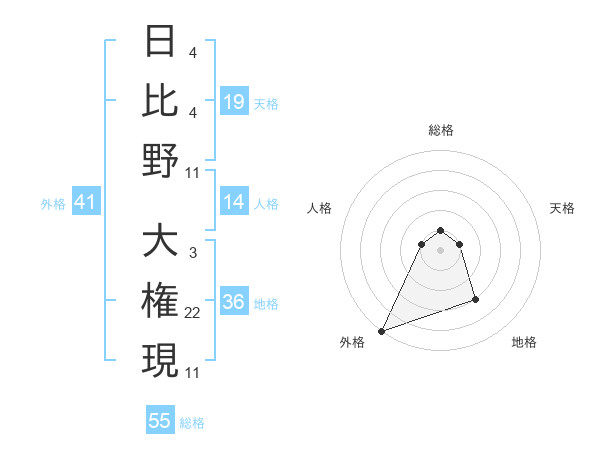 日比野 大権現さんを姓名の画数から五運を鑑定